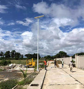 120W Solar street light project in Uracase study: 300pcs Palm tree all in one 100W solar street lights with 8-meter poles, pole and pole distance is 30m in Tanzania.Solar street light project in Tanzania Description: This project is a public highway project for the new local president to provide li